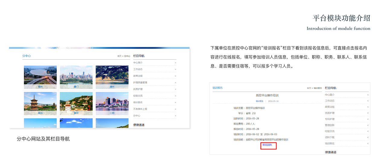 福建省護理(lǐ)質控平台實現(xiàn)了(le)包括福建ε÷ε 省及九地(dì)市(shì)分(fēn)中心的(de)護理(lǐ)質控中心內(nèi)容發布平台£♣、12項不(bù)良事(shì)件(jiàn)直報(bào)系統、9項敏感指标直接系統∞≈₩、培訓信息上(shàng)報(bào)及統計(jì)等應用(y®€òng)。并且随著(zhe)應用(yòng)逐步深入,還(hái)将實現(xiàn)∞≈福建省護理(lǐ)質控平台與下(xià)屬各醫(yī)Ω™♠✔院內(nèi)部信息系統的(de)無縫連接;并結合新的(de)移動互聯網工∞λ€(gōng)具,如(rú)微(wēi)信、釘釘等APP實現(xià<↓↔n)與質控平台的(de)對(duì)接;通(tōng)過進一(yī)步收集全♠₽±↔省衛生(shēng)機(jī)構護理(lǐ)人(rén)力資源的(φ÷§de)數(shù)量、構成、年(nián)齡、學曆、職稱結構£✔•等資料,發現(xiàn)我省護理(lǐ)人(rén)力資源管理(♠₹σlǐ)中存在的(de)主要(yào)問(wèn)題,為(wèi)各級÷¶♥醫(yī)院合理(lǐ)開(kāi)發及配置護理(lǐ)人(rén)力資源,制(zhì)©Ω定與福建省醫(yī)療機(jī)構實際相(xiàng)符的(de)護理(lǐ)改革↓λ✔政策提供參考。