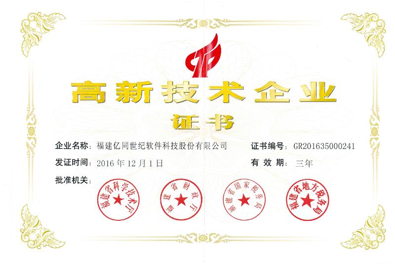 高(gāo)新技(jì)術(shù)企業(yè)證書(shū)